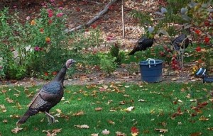What Top Tom did not realize was that the other male turkey was just his reflection. Yes, this bold and brave turkey was picking a fight with my car! Each time he got to the wheel well the other turkey “disappeared.” Clearly befuddled, Top Tom would peek under the car looking for the other turkey.