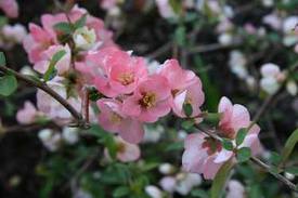 Ouch! One of the first mistakes in the garden. Don’t plant a quince along a path. It’ll eventually reach out with daggers. No matter. We’ll never remove ours because it gives us such a lift in early spring. So we pay our dues with conscientious pruning once or twice a year to keep it from impaling us as we walk along the path or graffiti-ing our cars as we back out of the driveway.