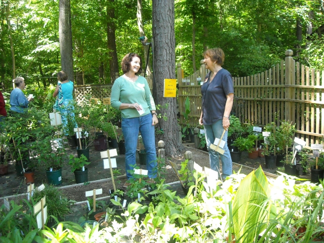Later, Linda will disburse the earnings. Granted, when most of the plants you are selling cost anywhere from 2 to 4 dollars, it’s pretty hard to make big bucks. But those two-dollar sales add up. After Bob and I take a share for expenses (yes, even with anonymous donations of used pots, and labels made from cheap venetian-blind slats, costs of potting soil, fertilizer, and especially water mount up) the remainder goes to the Albemarle Environmental Association.