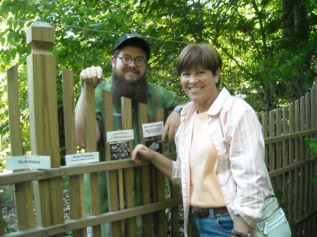 Cari and son Shea from the Outer Banks relax after stashing their finds. Note plant signs and pictures