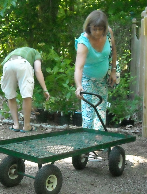 Part of the fun is greeting newcomers and catching up with folks we may see only once a year. It’s also grand to get reports about how well last year’s purchases are doing. Those few words, “everything lived,” mean so much to us. Flowering pomegranate, saint johnswort, variegated Solomon’s seal and pink deutzia are some of the plants that have charmed our visitors.