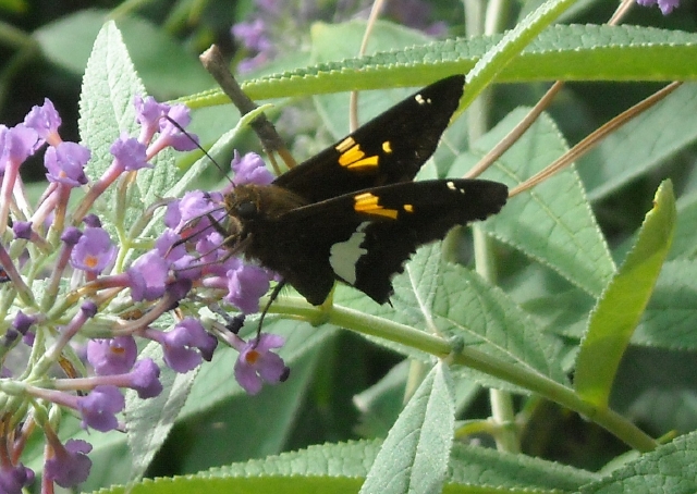 buttsilvspotskipThe silver spotted skipper foraging on Lo and Behold butterfly bushes is another of the brightest skippers we see in our garden.