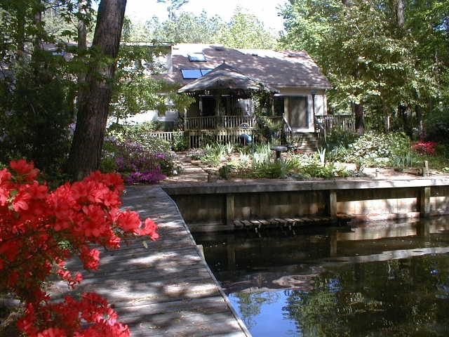 When we got around to establishing paths, we topped them with peanut hulls carted from a distant peanut processor. A nice touch that is sometimes mistaken for river rock.