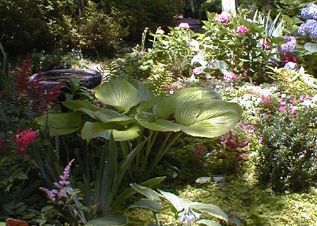 We had lavished compost, peanut hulls, potting soil and sand on this shady nook, hoping it would become a showpiece. And it was. Hydrangeas, hosta and fern had flourished here, but in hot sunlight they fried. It’s not pleasant to look at crispies while you are eating breakfast. We dug them out, pruned them back, and put them in our pot ghetto. Don’t worry, we said reassuringly, you’re among friends, you’ll be comfortable here, and some day we may even find a spot where you might be happy.