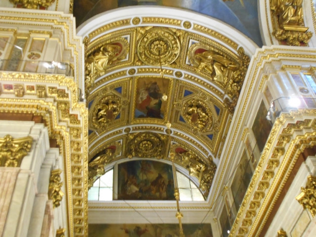 There’s actually a connection between America and Russia here. Alexander II (memorialized by the Savior on the Spilled Blood Church) used the money from the sale of Alaska to gild the great dome. Sixty serfs died from toxic fumes of mercury used to spray the gold. Day or night the dome is a beacon, much like our own capitol dome which was modeled after it. Only during World War II was it shadowed, painted gray to mislead enemy bombers.
