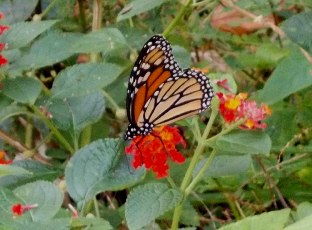 One day she was gone. The dance was over. Bon voyage, I silently called, melodramatically envisioning the winds that would buffet My Monarch under a lonely sky. Then I met her round the corner sampling sprawling lantana blooms. So much for drama.