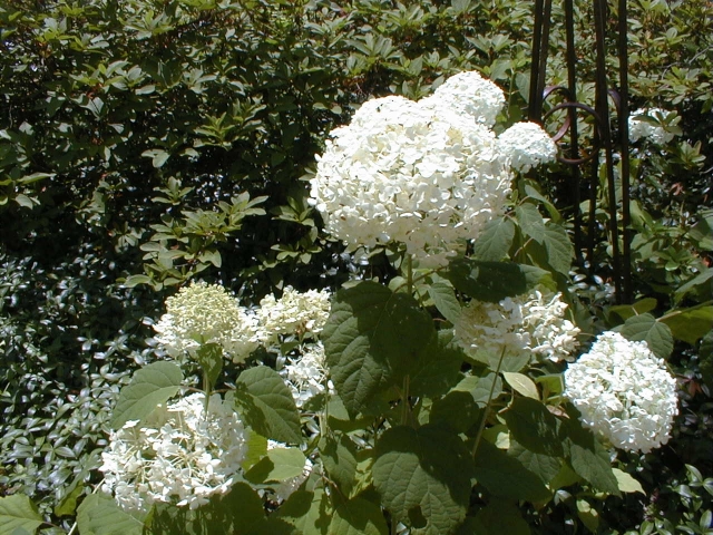 Not a strong grower for me, this Annabelle hydrangea, moved several times, wilty in sun and of stingy bloom in shade, but it survives