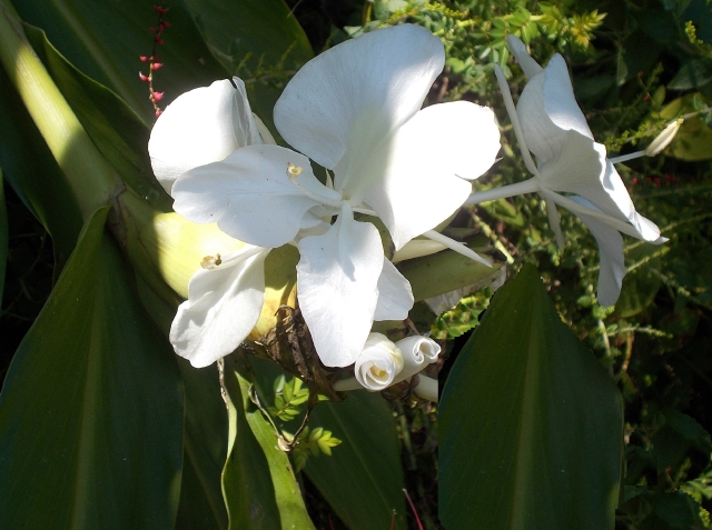 The last of the ginger lily still has a sweet smell but is fast giving way to the heady scent of osmanthus fragrans
