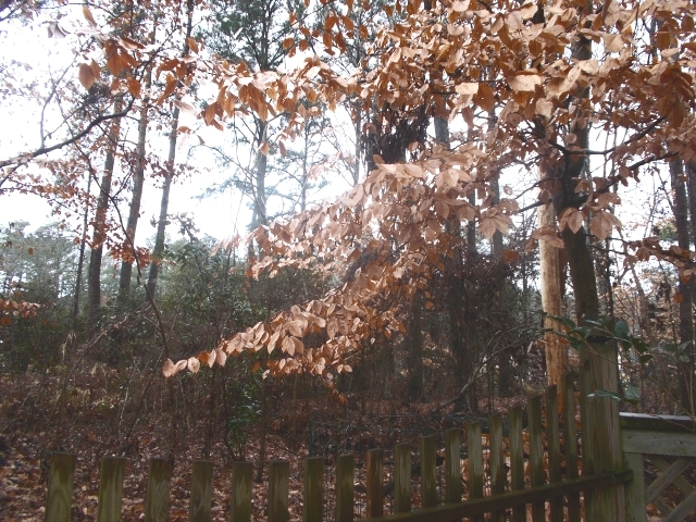 When it wasn’t snowing, there were many days of sepia and lead. Here a beech branch will hangs on to its leaves till spring