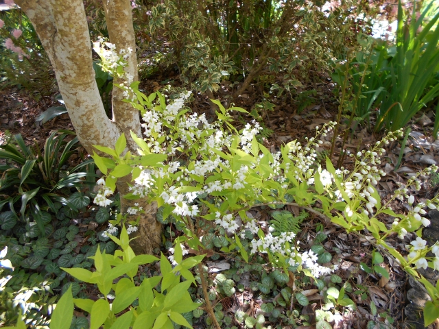 This young deutzia ‘Chardonnay Pearls’ once eaten down by rabbits, was spared this year. They preferred the older shrub that only laughed the rabbits off
