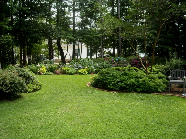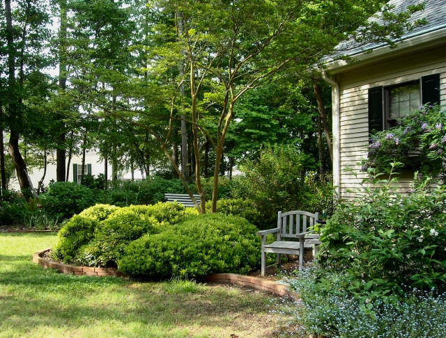I grouped them all into two opposing arcs, each with a watermelon crepe myrtle at its center and separated by a swathe of lawn. I felt pretty good about a garden design that seemed to work without fuss.