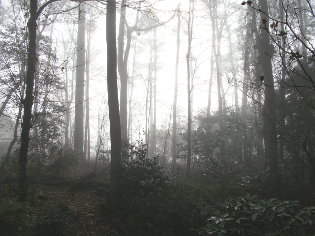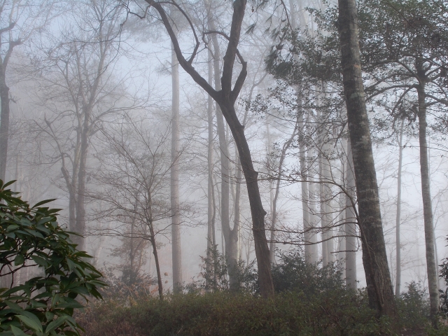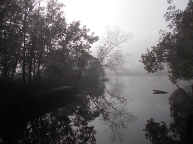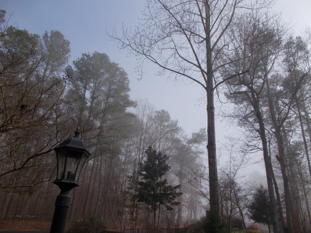 A white sky steals color. In still air, the wet mists of winter take advantage of a sun that’s gone missing for several days and settle down for a spell, polishing leaves that are already forgotten.