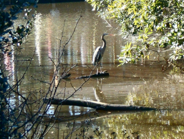 I posted a picture of the great blue heron in Felton Covered Bridge Park a while back. I think it is the second one in the area. The one who was there earlier is the one that got the gopher, although they could be the same. It is not easy to get close to it without causing it to leave. It does not put its wings out like the one who lives in the irrigation pond.