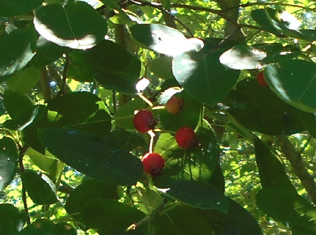 Native amelanchier, or Juneberry, a cloud of white this spring, first to bloom and first to berry, gives first feast to robins and squirrels. I’ve managed to catch the last few.