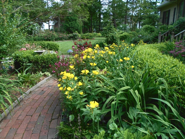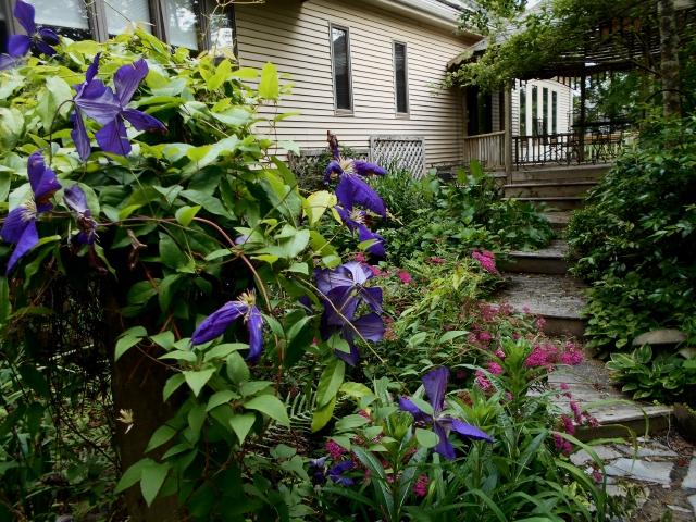 Don’t be jealous! You are seeing the garden here at its most luscious and most behaved. Come back in summer when vines smother and plants fight for territory and I don’t know where to begin. That’s when I yearn for a little order and a little empty space. I do feel your pain because watering is so expensive and time consuming and you feel like you should always be out there pampering some lonely plant. When it hasn’t rained in August the same pretty garden can look like a dishrag unless I drag hoses. Ah me, a gardener’s work is never done.