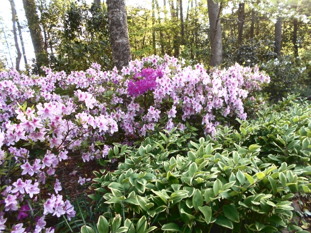 And, earlier in the season, our faithful bank of George Tabor azaleas, mature now, from cuttings years ago, practically carefree, and partnered with variegated Solomon’s Seal.
