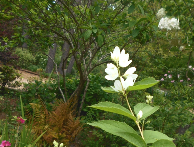 Nice to know the mock orange is thriving. It comes from Grandma’s garden on Long Island, way more than half a century ago. It is good stock. Down here the plant needs pretty rich soil, moisture, full sun and no competition from trees. We’ve had checkered success moving ours around, so that’s how I know. Our mock orange grows nothing like yours.
