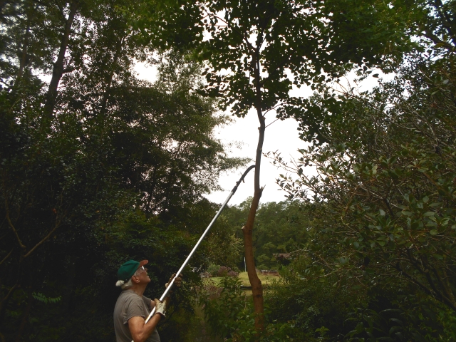 Three years ago we found a stripling with leaves similar to a redbud’s. (Should have looked more closely.) We’ve won the lottery on this one, we crowed, as we watched it grow to a height of thirty feet this year and imagined a splendid cloud of lavender bloom next spring.