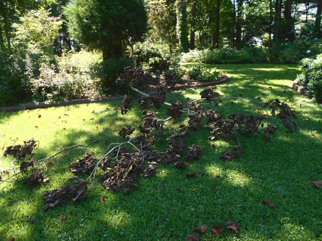 A gumpo azalea died here this year, the first to actually give out. In prior years, three or four others were rescued in the act of dying. I gave each one rehab and filled the space with a recovered substitute. So, is this #1 or #5? When weather cools, another that’s been in the wings is going in