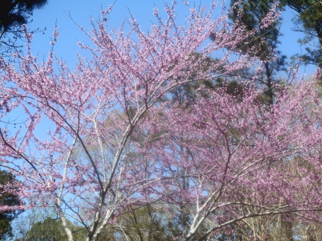 Our true redbud, recovered from being cut to the ground and left for dead because of canker and rot. It surmounted its troubles and now blooms faithfully near a front path where everyone can see it