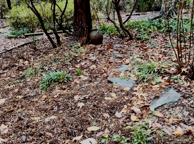 Jumping ahead in the story. In lieu of a picture of the pile which I forgot to take, here is what the mulch looked like on the ground after leaves had fallen