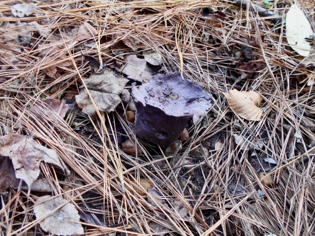 Usually there is a pile of leaves waiting to be ground on top of this black dirt composted from leaves of past years. After thirty years, this is what our soil looks like. Opportunistic tree roots are taking advantage of idle good soil, but we’ve already rescued pots of it for use when planting