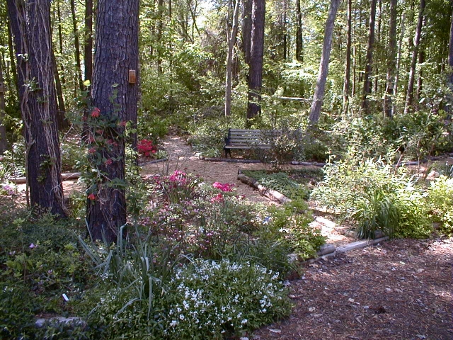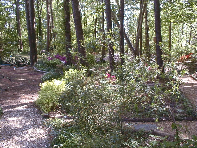 Year 2001. That’s how our peanut-hull paths looked before Hurricane Isabel came through in 2003 and knocked out paths and trees