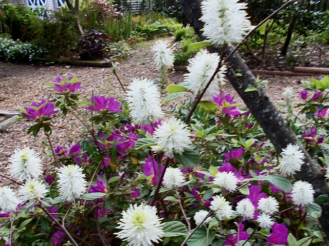 Azaleas, even those in full shade, outdid themselves this year with profuse and large blooms in a joyous spectacle across the garden.