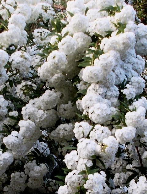 Close-up of the Double Reeves spirea remind me of snow balls tumbling from the sky.