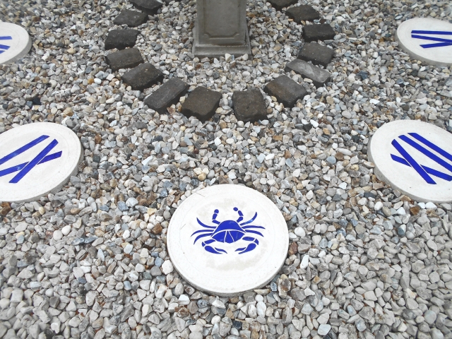 In our North Carolina garden the armillary and its base were centered on a nexus of woodland paths and surrounded by white stepping stones, created and poured by Bob, and inlaid with numbers and zodiac signs cut from stained glass. It was a delightful meeting point.
