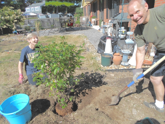 But we just happened to catch him napping under the ash tree. Wake up, Hero Mike, You’ve got more digging to do: that new magnolia, the rhododendron, and the sad rose of sharon we pulled…