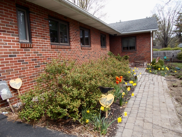 A stone path leads from the driveway to the front door. The previous fall, Susan, one of the most enthusiastic heroes had planted bulbs along it as a spring surprise for us. When they bloomed, we immediately wanted more.