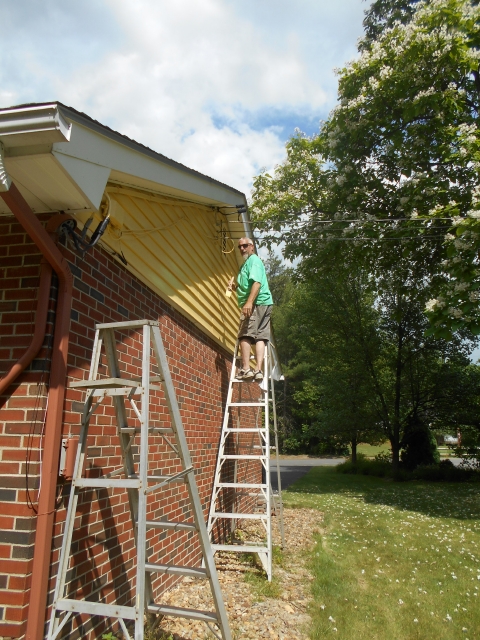 Yellow! That was the color we chose for the three gables, bright yellow with hints of earthtones in the paint mix — this choice after countless trips to the hardware store for paint swatches and unlimited hours of discussion and hand-wringing before, and especially after we saw the bright first coat. Were we becoming a circus house?