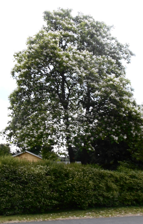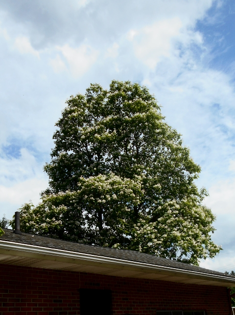 In our garden today, the catalpa tree dominates the skyline of our house. It could eventually grow to be 100 feet tall