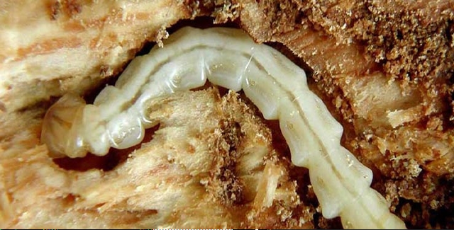 Larva chews through wood, creating galleries that eventually prevent vital fluids from moving throughout the tree. David Cappaert, U of Michigan, Bugwood.org