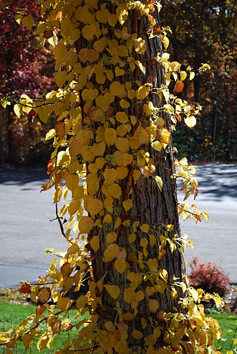 It looks like a little sister leaning on a big brother for help, but this is an old, old, tough plant.
