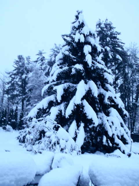 The second snow added weight to the struggling hydrangea and buried its branches in an icy mass below. Still, we ignored the possible damage. The Norway spruce reveled in the snow cover