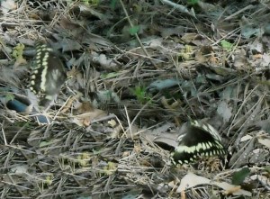 A bonus find in our leaf litter. Can you spot the mourning cloaks? They’ve wintered as adults, emerged in early spring and are beginning to mate