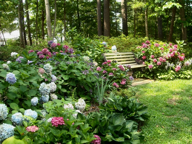 A romantic nook in our garden, rarely watered, thrives in wetlands soil tempered by roots of trees that take their share of plentiful water