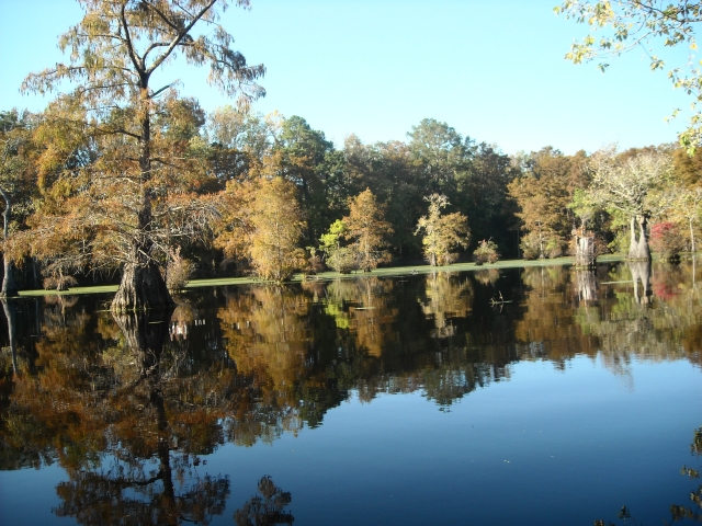 In remote Lassiter Swamp, which feeds the pond, some cypress trees are over 1000 years old. There’s always a fisherman on the pond and the great blue heron acts as sentinel. Ten miles of paths beckon hikers and picnickers with views of the pond. Campers can backpack or paddle to wilderness sites or motor into secluded wooded sites.