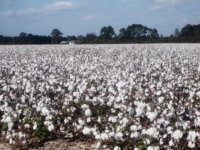 A modern cotton field, growing robust hybrid cotton that is harvested only once a season. Photo by aheronsgarden
