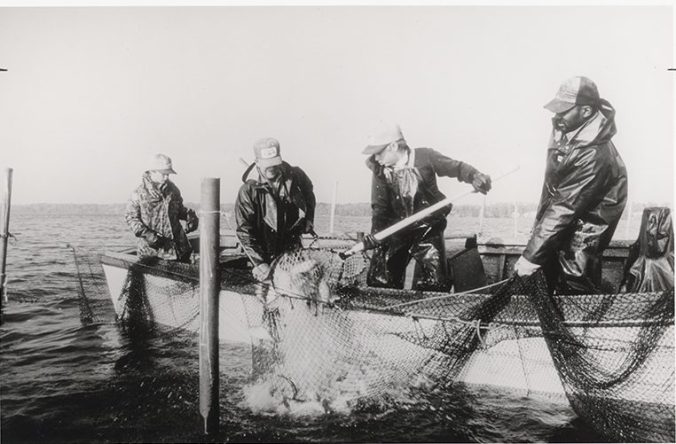 Pound nets, gill nets, or huge seines, some a mile long, would lace the waters to trap herring, shad, sturgeon and rockfish as they swam upstream.