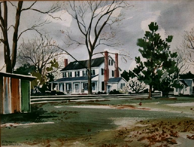 This century-old artwork depicts the Cupola House, built in 1758 and considered the finest example of a southern Jacobean home built of wood