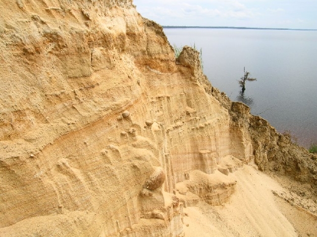 Today the Terrace is being eroded by winds from nor’easters and cyclones and undercut by storm surges. In places, gnarled old cypress trees, many now submerged, hold waters back and prevent erosion, creating headlands along the shore.