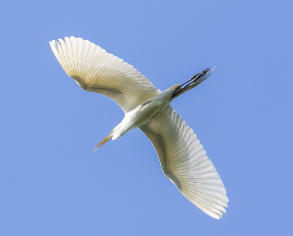 Magnificent great egret in flight. Photo by Roads End Naturalist