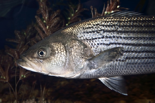 Striped bass are the predators of the river. They feed on herring and shad and blue crabs. They never stop growing, and a ten-year-old female can easily weigh 30 to 40 pounds.
