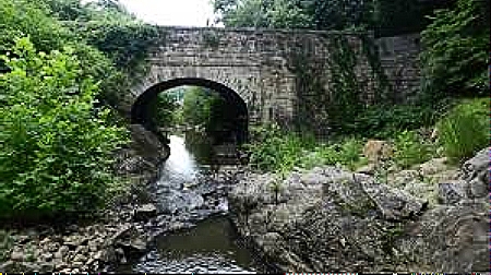 Roanoke Canal aqueduct high above Chockoyotte Creek with its handsome arch and fine workmanship is a highlight of the Roanoke Canal walking path