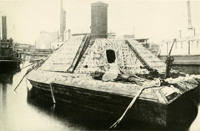 Photo of the Confederate Steamship Albemarle ram, probably at the Norfolk Navy Yard, after its sinking and salvaging at the end of the Civil War before its final scrapping