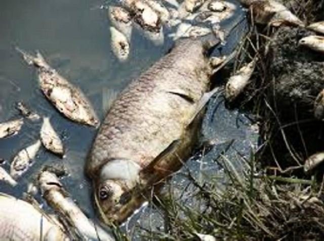 Or, fish die in great numbers when dissolved oxygen plummets.