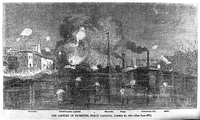 Water levels were high on the Roanoke as the ram began her maiden voyage, so she coasted easily over chains laid across the river by Union sailors. The CSS Albemarle then steamed south to recapture Plymouth.